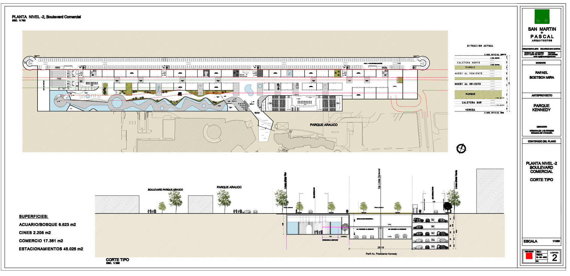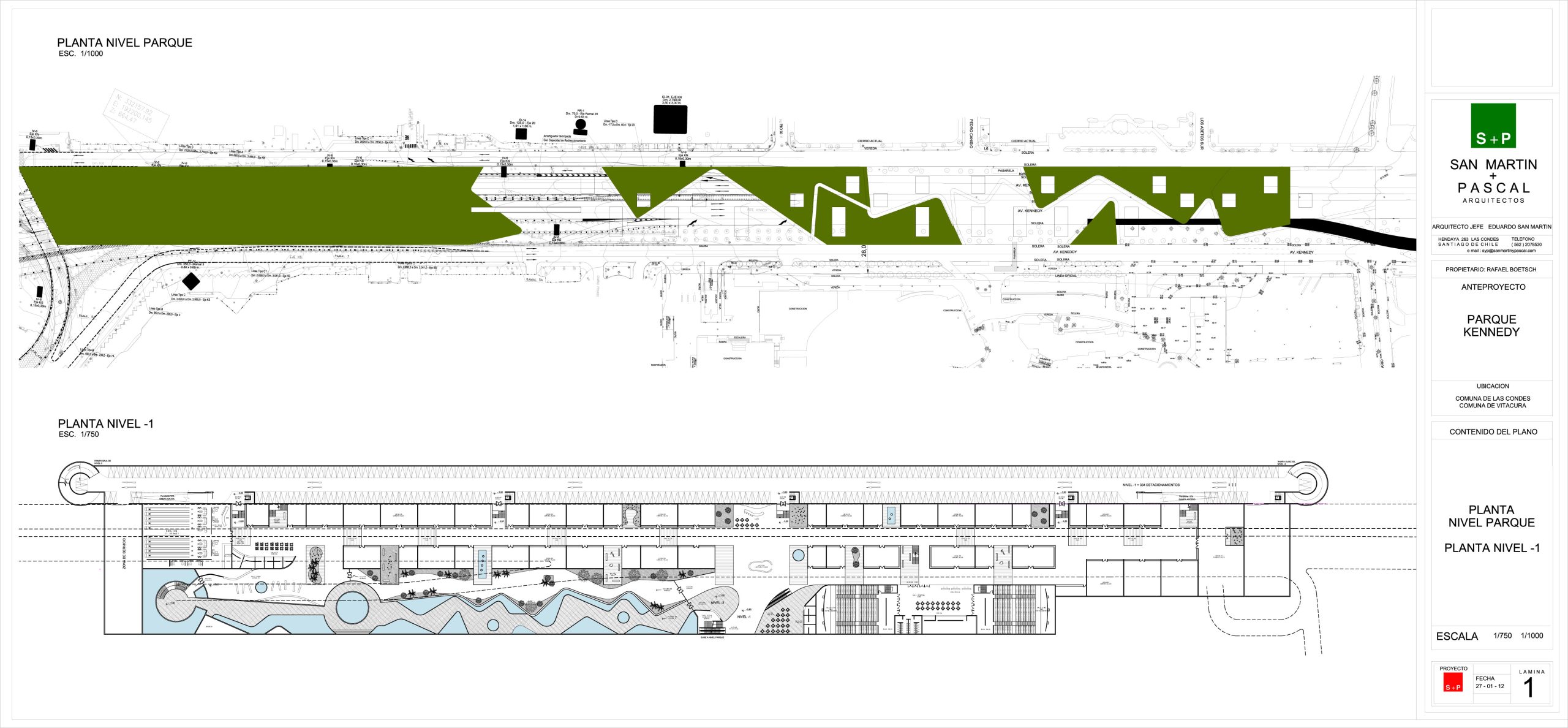 Nuestra Propuesta: Nuestra propuesta expuesta públicamente en septiembre 2012 fue crear un prototipo de Parques Urbanos que puedan hundir las zonas críticas de tránsito y la grave contaminación de todo tipo Propusimos a un privado de la zona si estaría dispuesto a ganar 25.000 m2 de Retail a cambio de financiar el hundimiento de Av. Keneddy entre el Mandarín y el Marriot Pero además financiar un Parque Urbano con huerto paisajismo sobre esto e incluir un Parking bajo caletera de Vitacura + un Cluster (Aquariums, Imax 3 D) bajo caletera de las Condes Todo el proyecto se integraba de manera espectacular al barrio generando una solución vial extraordinaria tremenda plusvalía Replicable en múltiples puntos de Chile.